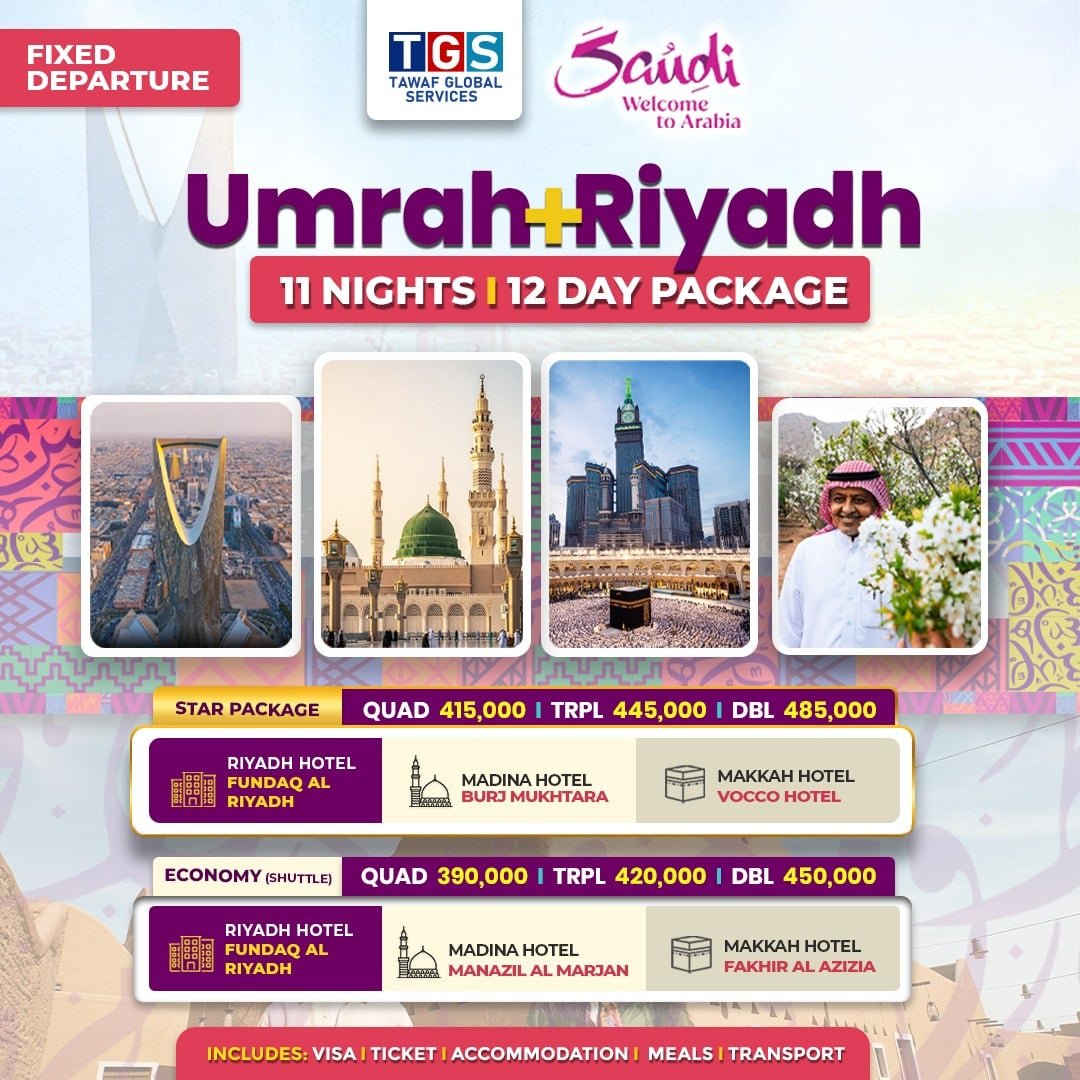 Like the days package we also offer an E Visa to ensure smooth and quick entry into Saudi.